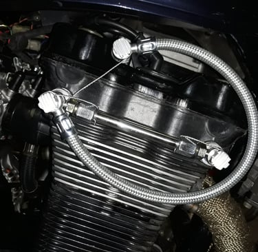 Az olaj a blokk hátoldalán lévő tömlőkön keresztül jut a