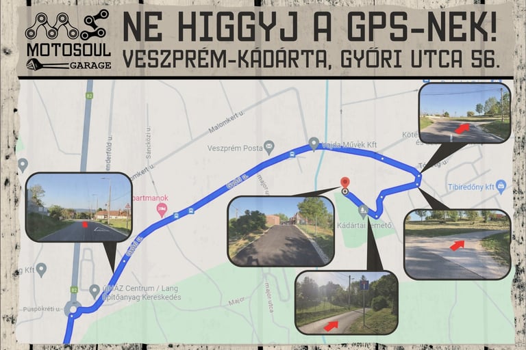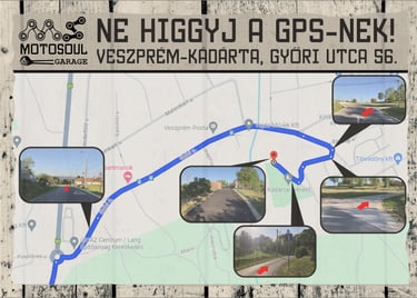 A szervizem Veszprém mellett, Kádártán található! A műhelytől pár méterre található buszmegállóhoz negyed óránként jár a 23-as helyijárat így tömegközlekedéssel is könnyen megközelíthető. Autóval, vagy motorkerékpárral legkönnyebben a Tószeg utca felől tudsz megközelíteni. Az udvarban autóval történő parkolásra sajnos nincs lehetőség, ezért mindenkit tisztelettel megkérek, hogy az autóval a felhajtó előtti aszfaltozott részen keressen parkolóhelyet. A beszállított motorok le- és felrakodásban természetesen szívesen segítek.
