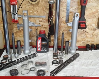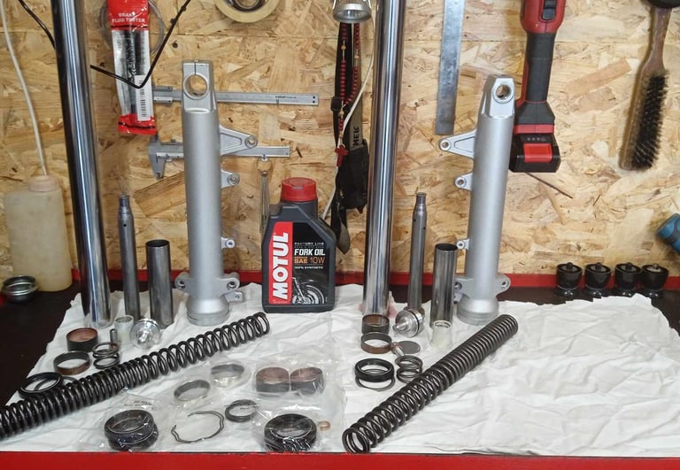 A motor biztonságos, és kényelmes használatához nélkülözhetetlen a tökéletes állapotban lévő futómű. Első villa szimering-porvédő cseréje, komplett felújítása, olajcseréje gyári vagy gyári beszállítói alkatrészekből.